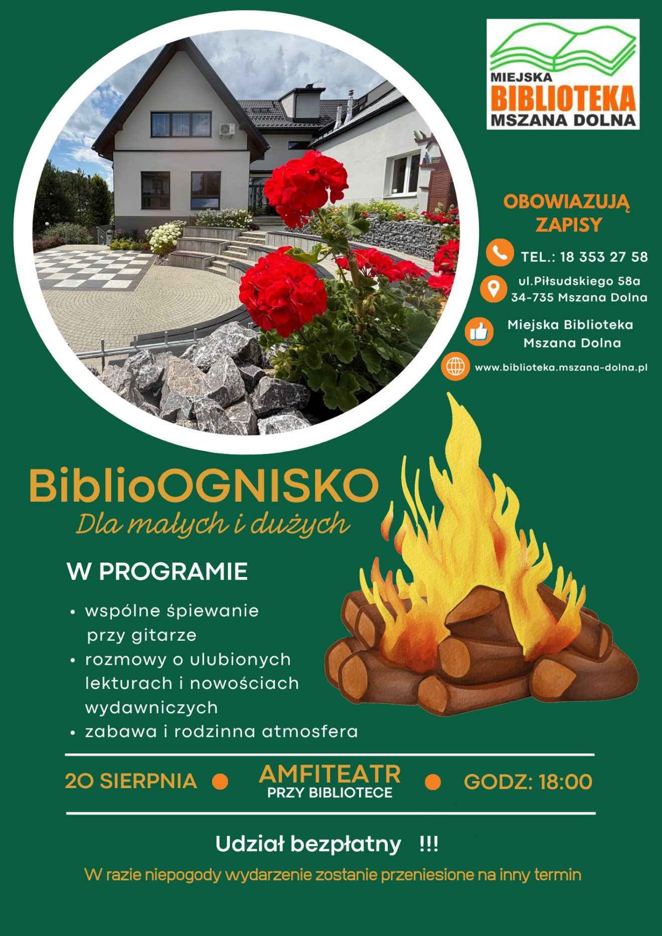 Mamy dla Was coś absolutnie wyjątkowego. Już w środę, 20 sierpnia o godz. 18:00, zapraszamy na pierwsze w historii naszej biblioteki BiblioOGNISKO !